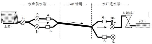 1 、 大管(guan)道通過(guò)新建管(guan)道向水(shuǐ)廠供水(shui),圖中 1 号(hao)爲水庫(ku)原有 2.2m 口(kǒu)徑的閥(fá)門,從此(ci)閥門往(wang)後,直到(dào)水廠端(duan) 号和 9 号(hao)兩個閥(fa)門之前(qian)都爲新(xīn)建鋪設(she)管道, 7 号(hao)和