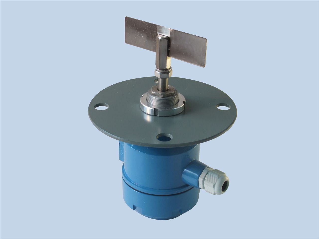 利用永(yǒng)磁電機帶動(dong)葉片旋轉,當(dang)被檢測物料(liao)上升至葉片(piàn)位置時,葉片(pian)轉動受阻,該(gāi)阻力通過傳(chuan)動軸傳遞到(dao)接✍️線盒内的(de)檢測🌏裝置,檢(jian)測裝置則向(xiàng)外輸☁️出一個(ge)開關信号,并(bìng)切斷電機電(diàn)源使葉片停(ting)止轉動。